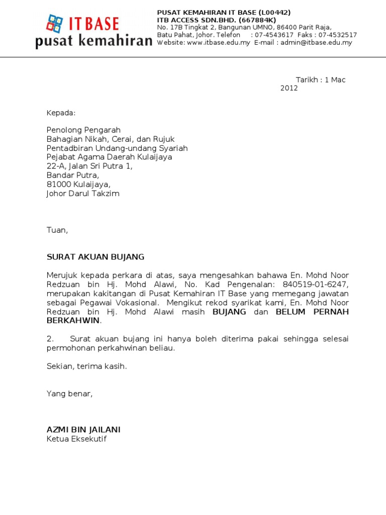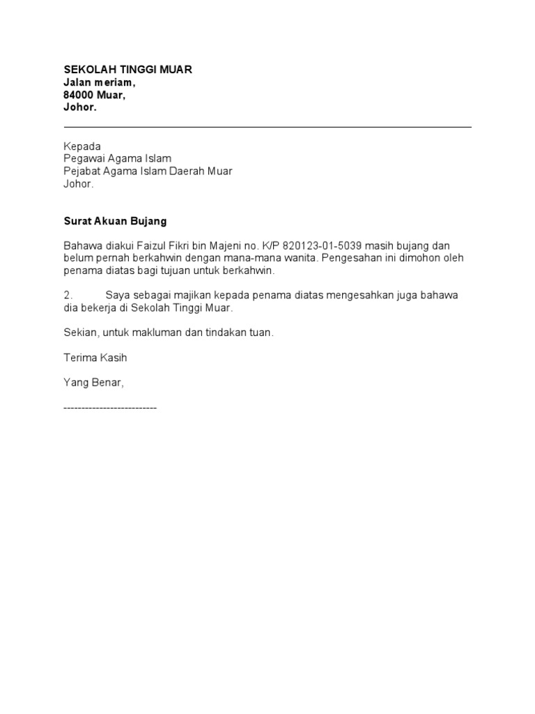 Contoh Surat Akuan Bujang Dari Penghulu Kumpulan Contoh Surat Dan Soal Terlengkap