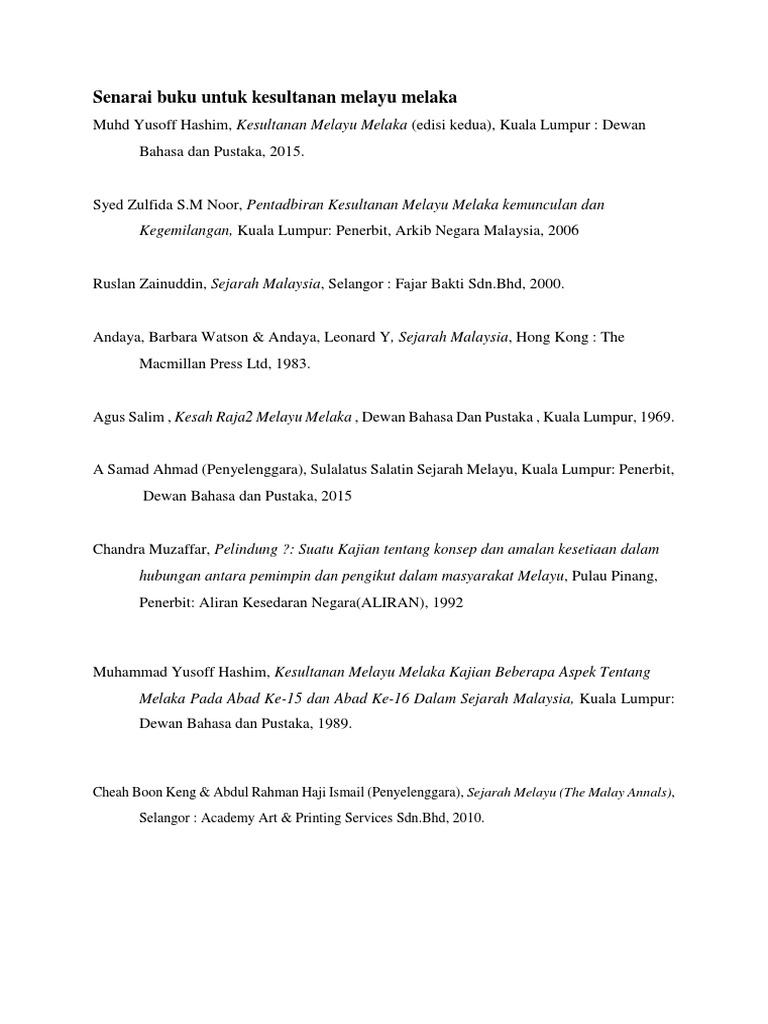 Senarai Buku Untuk Kesultanan Melayu Melaka Pdf